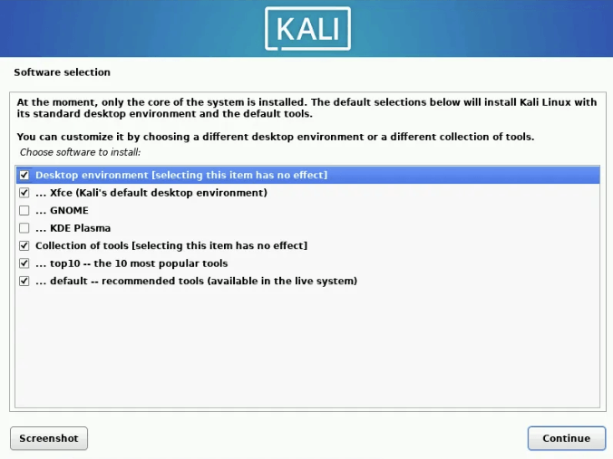 Si vous ne souhaitez pas dâinterface graphique, dĂ©cochez les options Desktop environment et XFCE :