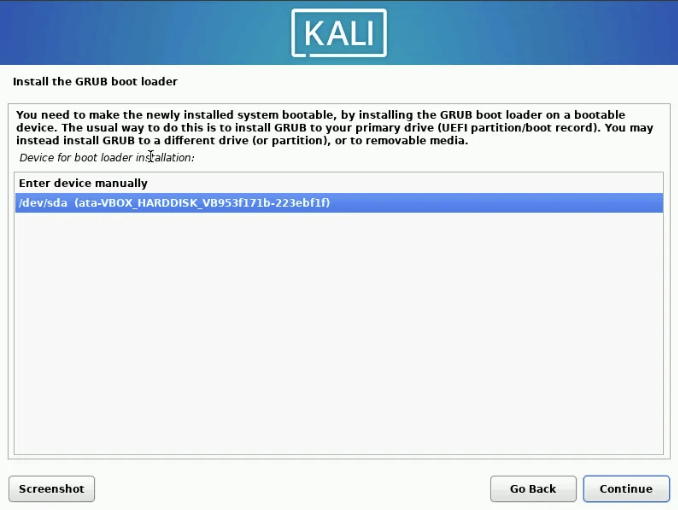 - Renseignez le checksum fourni par Kali Linux.