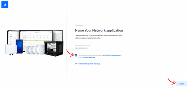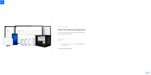 Lors de la configuration initiale, attribuez un nom Ă votre contrĂŽleur Wi-Fi selon la nomenclature utilisĂ©e dans votre organisation (par exemple, « Unifi-NAS-Synology » ou tout autre nom pertinent pour faciliter lâidentification). Cliquez sur « NEXT » pour poursuivre la configuration.