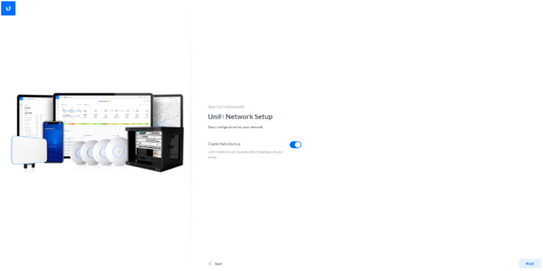 Laissez lâoption « Enable auto backup » activĂ©e afin dâassurer la sauvegarde automatique de la configuration du contrĂŽleur, puis cliquez sur « Next ».