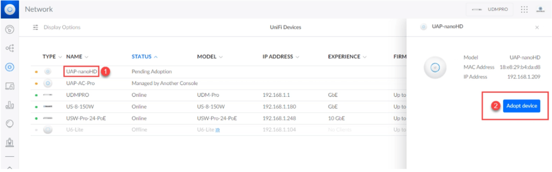 Pour adopter vos bornes Wi-Fi sur le nouveau contrĂŽleur, accĂ©dez Ă lâinterface du contrĂŽleur UniFi, puis rendez-vous dans la section « Ăquipements ». AprĂšs la rĂ©initialisation effectuĂ©e prĂ©cĂ©demment, votre borne Wi-Fi devrait apparaĂźtre dans la liste des Ă©quipements disponibles avec le statut « à adopter ». SĂ©lectionnez la borne, puis cliquez sur « Adopter lâappareil » (« Adopt device »). Le contrĂŽleur va alors lancer la procĂ©dure dâadoption et mettre Ă jour automatiquement le firmware de la borne si nĂ©cessaire. Patientez quelques instants le temps que lâopĂ©ration se termine : une fois lâadoption rĂ©ussie, la borne sera pleinement gĂ©rĂ©e par le nouveau contrĂŽleur UniFi et vous pourrez procĂ©der Ă sa configuration selon vos besoins.